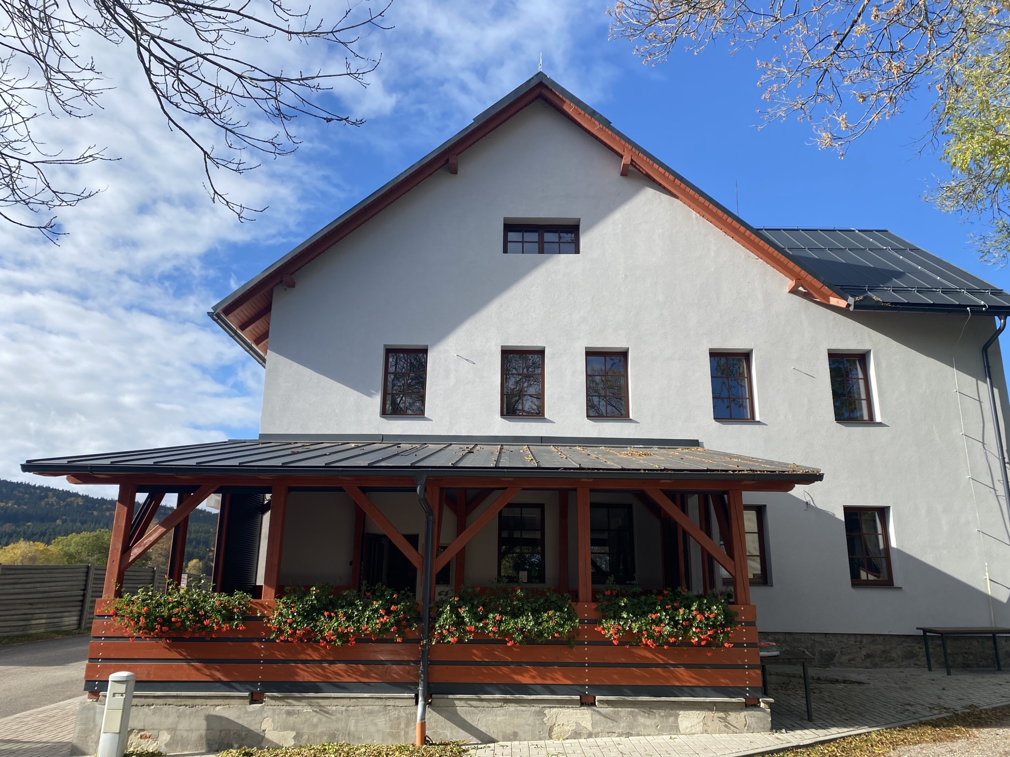 K dispozici úschovna na kola a lyže.